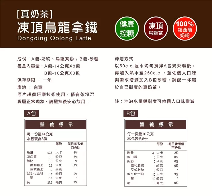 歐可茶葉-控糖系列 真奶茶 觀音拿鐵 8入/盒