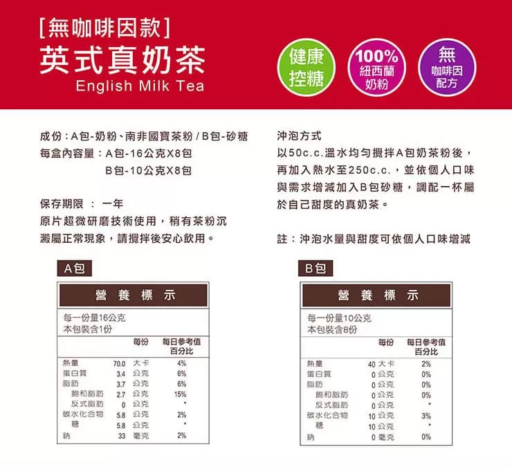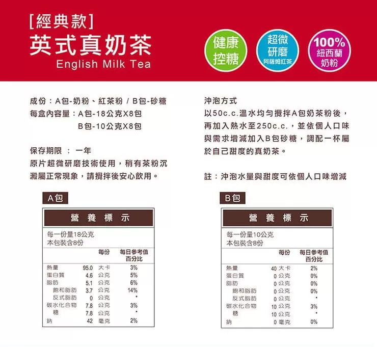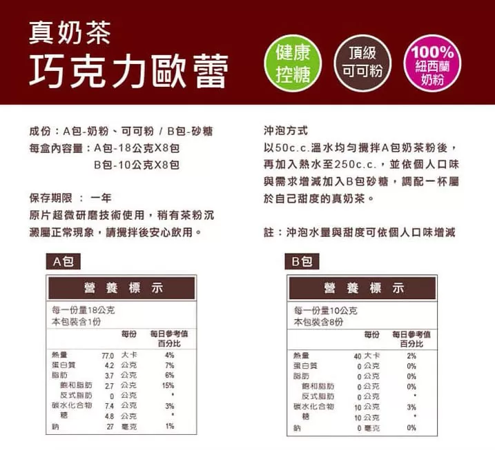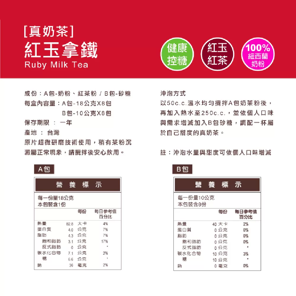 歐可茶葉-控糖系列 真奶茶 紅玉拿鐵 8入/盒