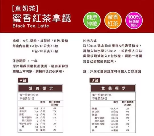 歐可茶葉-控糖系列 真奶茶 蜜香紅茶拿鐵 8包/盒