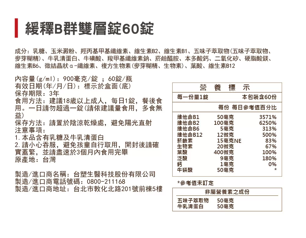 台塑生醫-醫之方緩釋B群雙層錠(60錠/盒)