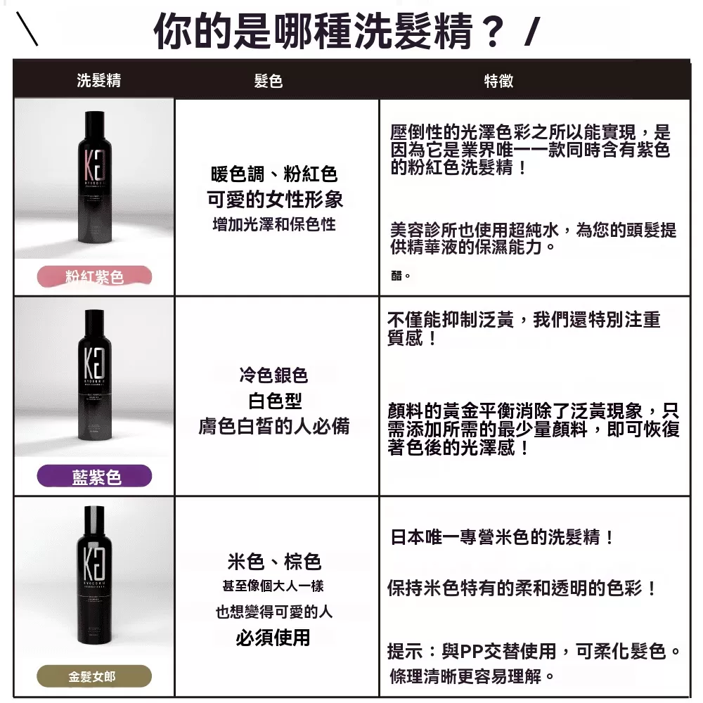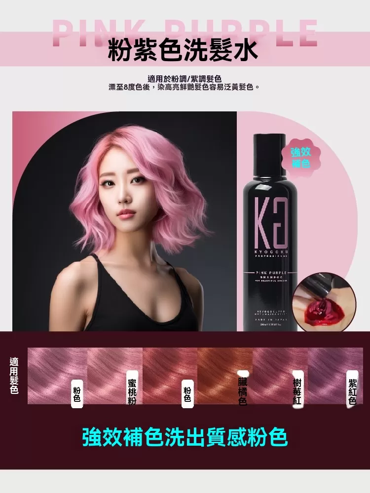 卡雅仕彩色洗髮水採用氨基酸類清潔成分配製而成,溫和到嬰兒都可以使用,從學生到成人,以及廣泛的人群都可以使用皮膚敏感的人。此外,我們還重點關注了紫色洗髮精的問題,例如頭髮吱吱作響和起泡不佳等問題,京極的Calashan是用超純水配製的,這種水也用於美容診所。因此,它消除了彩色洗髮精特別擔心的頭髮吱吱聲和起泡問題,蓬鬆的攪打泡沫可以保護頭皮和頭髮在洗髮時免受摩擦。