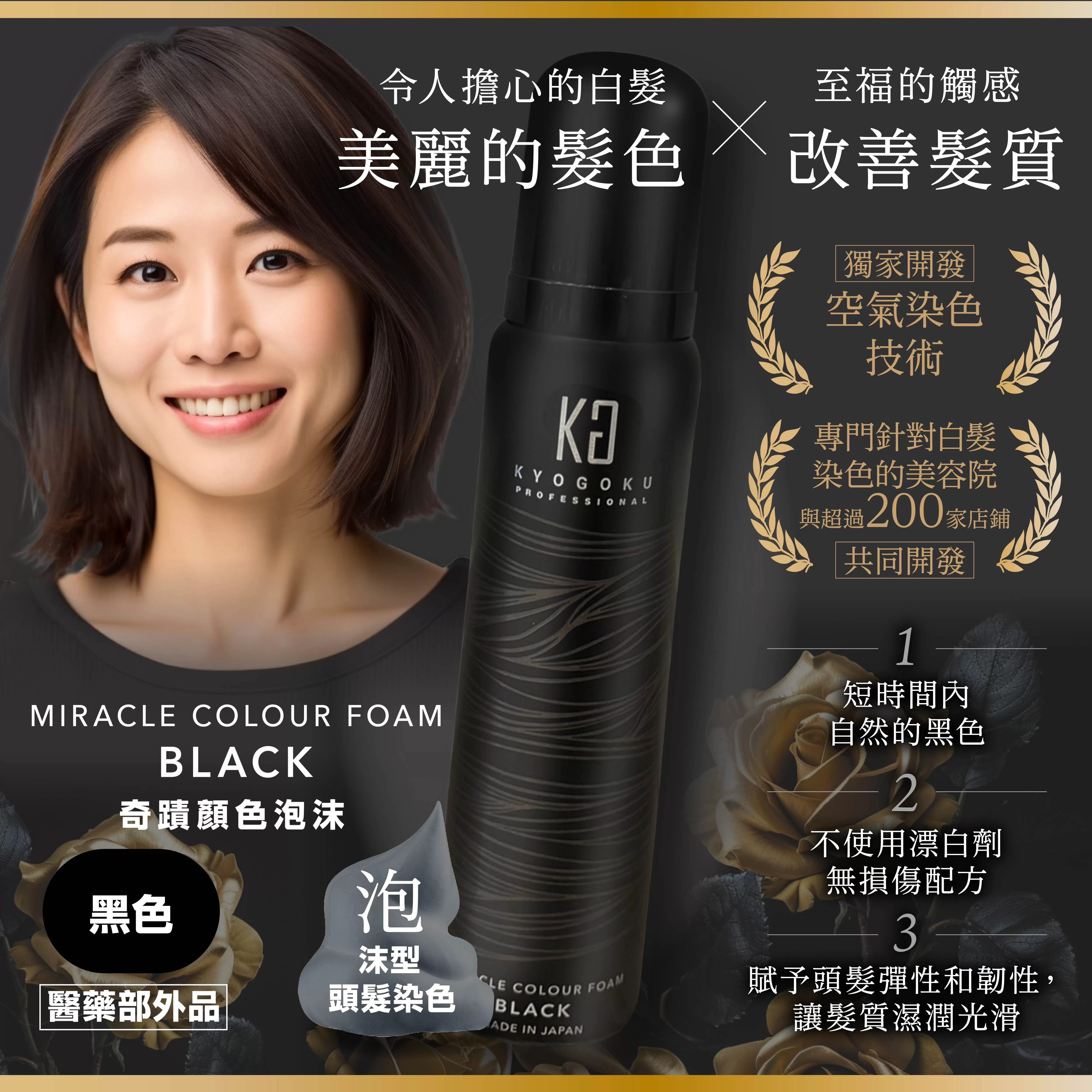 【卡雅仕】日本 KYOGOKU 奇蹟角蛋白泡沫染(黑髮)